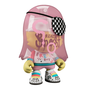 SUPERGHOST features a matte finish body, articulating head, arms and shoes, removable semi-translucent ghost cloak complete with a custom eye-patch, gloss finish spray paint can head with chrome cap, real rattle sound, and original artwork by Trevor Andrew.