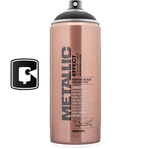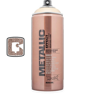 The Montana Metallic Effect Sprays bring state of the art paint technology to traditional metallic effect colors. Loaded with a Montana Standard cap, these cans provide excellent delivery and reliability under medium pressure output. Not only are the Montana Metallic Effect colors ideal for application on functional objects such as bikes and furniture, they can also add a metallic flare to any creative or artistic project on paper, cardboard, primed canvas, wood, glass, metal, ceramics, porcelain, stone, acrylic and other paintable materials. Made from an Acrylic-Nitro Combination base, the paint surface dries to a durable semi-gloss finish which is both hard wearing when cured (24+ hours) as well as flexible. Offering great lightfastness, the Montana Metallic Effect line can also be combined with the Montana GOLD, Montana BLACK and Montana ACRYLIC marker lines.