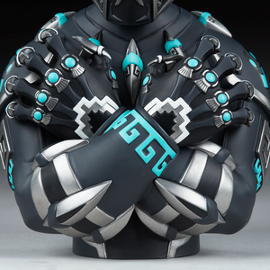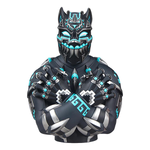 Wakanda Forever. Jesse Hernandez brings his stylized Urban Aztec aesthetic to the Black Panther with a new vinyl art toy bust from Unruly Industries. Hernandez has infused big cat elements into T’Challa’s vibranium suit from the ring of claws on the forehead and the teeth inset into the mask to the paw outlines on the shoulders. The mix of turquoise blue, silver and gray evoke a predator on the prowl in the dark of night. This is Hernandez’s latest design in a series of busts celebrating iconic heroes drawn from the Marvel and Star Wars universes.