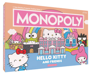 You can never have too many friends! Join Sanrio's universally adored icon with the ultimate game for Hello Kitty fans! MONOPOLY: Hello Kitty and Friends Premium Edition lets you buy, sell, and trade locations where all your favorite characters work and play in this exclusive version of the classic game featuring My Melody, Keroppi, Badtz-Maru, Chococat, Cinnamoroll, and many others. Upgraded collectible HELLO KITTY AND FRIENDS vehicle tokens shine with a rose gold finish, including a supercute bonus Crown with Bow token, all inside a rose gold foil-adorned box! Indulge in Celebrations and Adventures as you collect Kuromis Candy Shop, DokiDokis Burger Shack, and more to be the last player with custom HELLO KITTY AND FRIENDS currency to win!