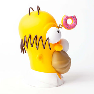 Spanish artist Bakea has begun to translate his surreal portraits of beloved cartoon characters into three dimensions with the just-released Donut Brain vinyl art toy bust from Martian Toys. The facial features of the iconic and mostly beloved Springfield father are askew, twisted about, yet instantly recognizable.