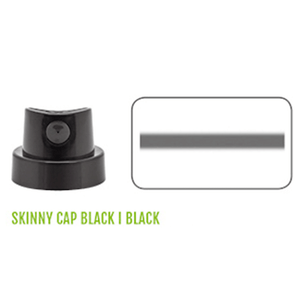 The Skinny Cap Black/Black is a cap for fine average spray width from ca. 1-1,5cm (0.4“ to 0.6“). Perfect for Metallic Colors. The spray width changes with the used distance to the object. For skinnier lines, spray from a closer distance. For fatter lines, spray from a further distance.