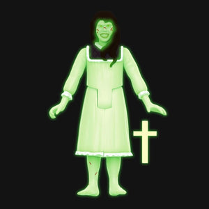 If her demonic appearance wasn’t enough of a clue that Regan is possessed by an evil spirit, the fact that she glows in the dark should leave no doubt! This 3.75” scale, articulated The Exorcist ReAction Figure of Regan features a glow-in-the-dark body and includes a glow-in-the-dark crucifix accessory. Scare up some frightfully good times by adding this glow-in-the-dark variant of The Exorcist ReAction Figure of Regan to your collection of horror icons!