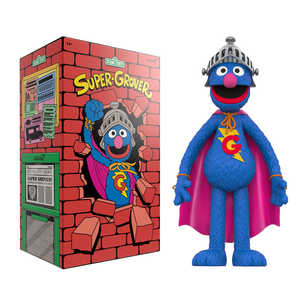 It’s a bird…it’s a plane, it's…Super Grover! This 17'' poseable Sesame Street SuperSize Vinyl Super Grover is made of premium soft vinyl and includes a soft goods fabric cape that can attach at his neck and wrists, as well as a helmet with a visor that can be posed up or down, depending on how totally not scared Super Grover is feeling. This SuperSize Super Grover is ready to fly into your home and save you from a boring day or any under-the-bed-type monsters!