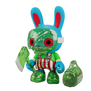 SUPERPLASTIC’s synthetic celebrity & toy designer, Guggimon, crafted 8-trippy-inches of contrasting soft vinyl and clear green plastic to create Fashion Soho Mushroom Massacre Half Ounce. This exclusive SUPERPLASTIC piece features signature accessories, including a transparent ax, bag and removable mask.